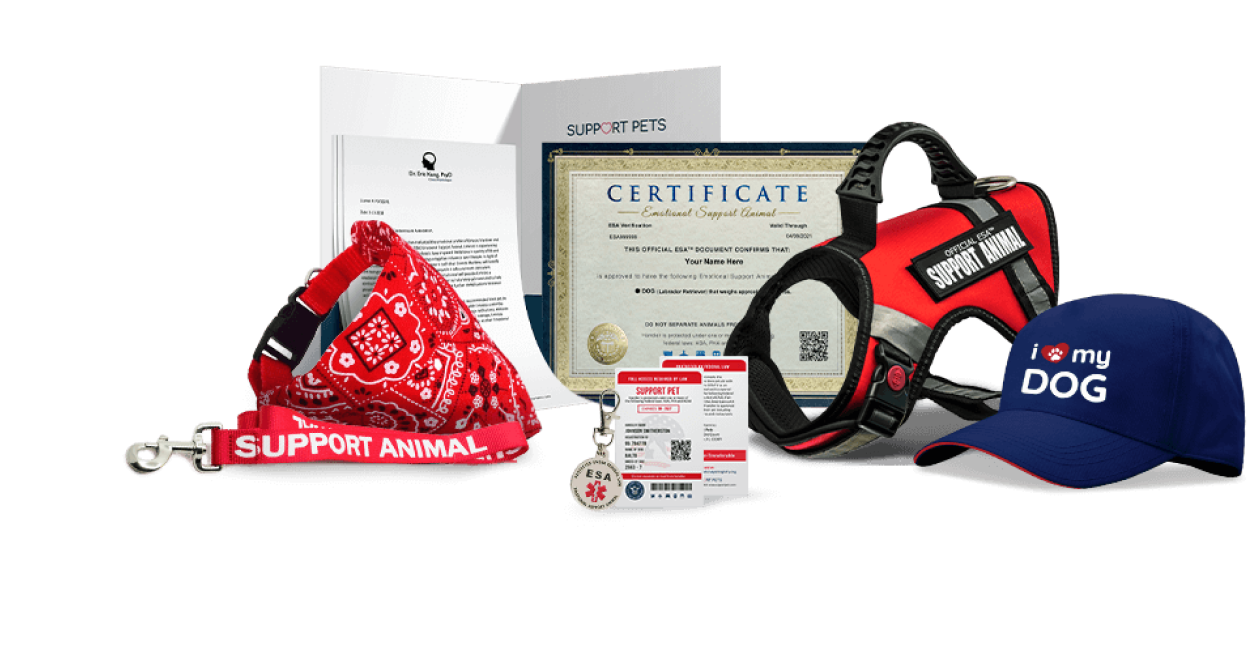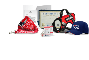 As an Official ESA pet owner, you’ll gain access to our approved line of Vests, ID cards, Collar tags, Leashes, certificates, and more.